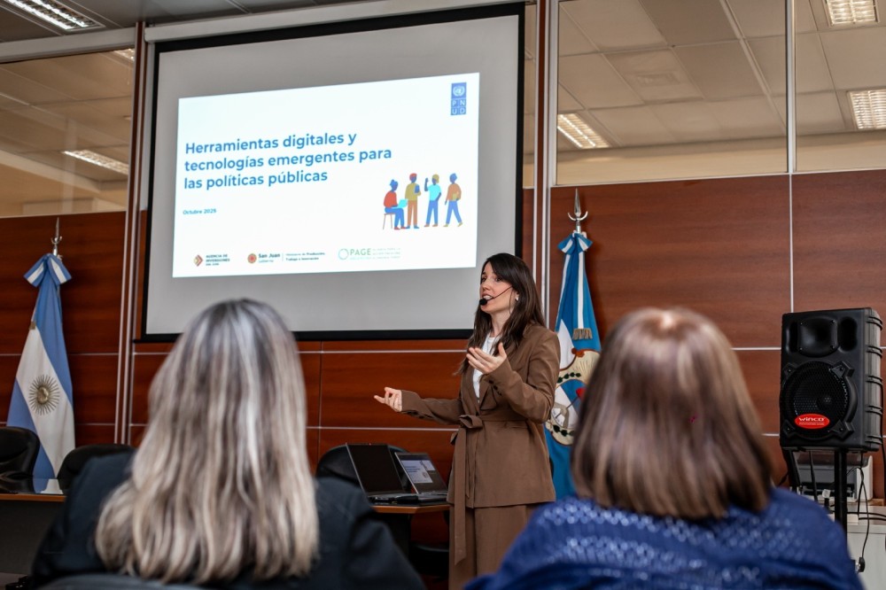 El equipo de PNUD Argentina, conformado por especialistas en desarrollo inclusivo, transformación digital y diseño de políticas centradas en las personas facilitó sesiones sobre estándares digitales, diseño centrado en la ciudadanía, gestión de productos digitales y tecnologías emergentes. Esta metodología participativa permitió a los equipos ministeriales mapear sistemas, definir problemas y prototipar soluciones adaptadas a los desafíos locales. “El taller se realizó en temáticas específicas de microcréditos y líneas de financiamiento para Mipymes”, indicó Paola Bohorquez, Coordinadora del Área de Desarrollo Inclusivo.