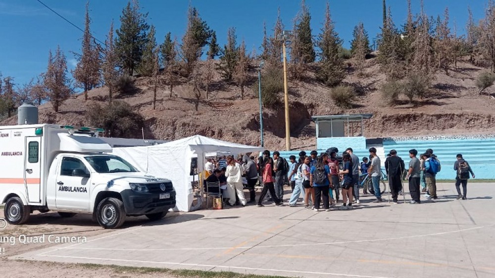 En ese contexto, el equipo de Salud del Hospital a cargo del Dr. Pedro Morales, colaboró con una ambulancia totalmente equipada y dos enfermeros que realizaron control de signos vitales, glucemia y brindaron consejería de salud sexual reproductiva a los estudiantes.