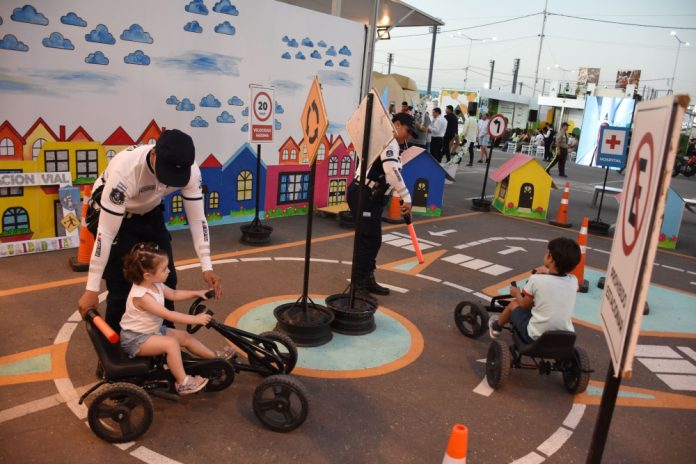 Una gran concurrencia de familias disfrutaron de la experiencia de práctica y aprendizaje en normativas viales.Con más de 500 chicos durante las tres jornadas de la Fiesta Nacional del Sol, la pista de seguridad vial, una de las actividades ofrecidas por el Ministerio de Gobierno, junto a la Secretaría de Estado de Seguridad y Orden Público, fue uno de los puntos más visitados de Gobierno.Coordinada por la Dirección de Tránsito, la pista representó un espacio de 140 metros cuadrados equipada con una calle real, semáforos, sendas peatonales, señales verticales y kartings, en los cuales los pequeños se desplazaron por el circuito poniendo en práctica lecciones sobre convivencia vial.Al término de las jornadas, se llevó a cabo un sorteo de dos cascos para motocicleta por noche entre los adultos que acompañaron a sus hijos en la pista. Esto se complementó con el mural maquetado que simula una ciudad, aporte artístico de la Asociación Familias del Dolor y la Esperanza, en otro esfuerzo del Ministerio de Gobierno por colaborar junto a la comunidad en un tema de suma importancia como la seguridad vial.