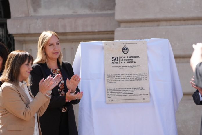 El Ministerio de Gobierno encabezó la actividad de conmemoración del 50° aniversario del comienzo de la última dictadura cívico militar de la Argentina, en el espacio de la ex-Legislatura de San Juan, con un evento que contuvo expresiones recordatorias y artísticas.
