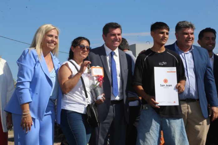 En un acto encabezado por el gobernador Marcelo Orrego, 51 familias del departamento Sarmiento recibieron las llaves de sus viviendas en el barrio Solares del Sur. Cabe destacar que estas forman parte de este barrio, y que en los próximos meses entregarán otras 243 viviendas, que ya presentan un avance del 83%.